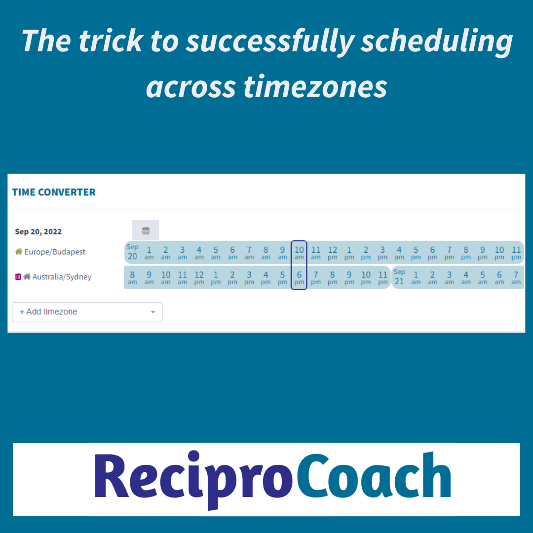 If you’re working with a coaching colleague in another timezone, scheduling doesn’t have to be difficult.